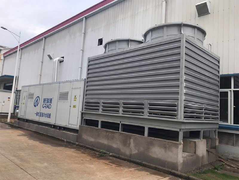 山东格瑞德集团有限公司为柳州五菱汽车工业有限公司车轿厂齿轮车间订制生产一体式冷水机组,该机组将机房、制冷主机、冷却塔、冷却水泵、冷冻水泵、膨胀水箱以及管道各种阀件和控制器件集成为一体式装置,并可自带防护机房,能直接置于室外,不需另设控制机房;集节能环保、高效稳定、使用寿命长、占地面积较少等优点于一身;在此项目中,山东格瑞德集团有限公司全程参与设备产品的生产过程。格瑞德一直秉承着“质量管理零失误、产品质量零缺陷”的理念,在产品制造上精益求精;此次为柳州五菱汽车提供的主机和末端产品,出厂时要经过严格检验程序,保证设备正常运行。