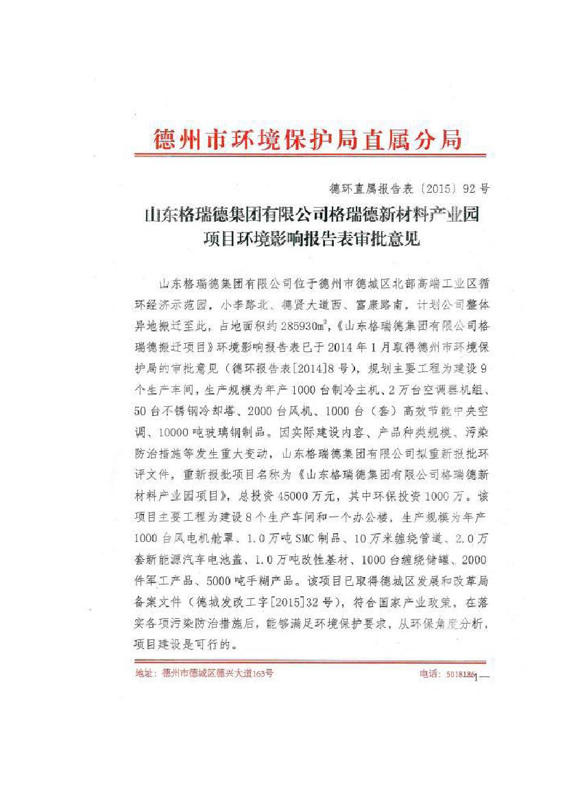 格瑞德喷漆房提质增效项目 山东格瑞德集团有限公司 格瑞德喷漆房提质增效项目 环境影响报告书