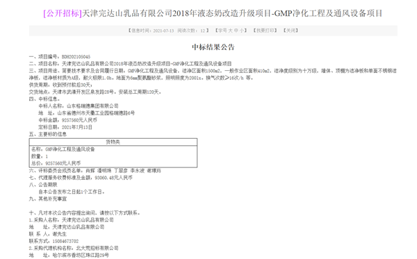 完达山乳业股份有限公司始建于1958年,是隶属于北大荒农垦集团有限公司的民族乳品企业。2021年7月份,格瑞德集团成功与完达山集团顺利签订净化工程合同,同北大荒农垦集团正式建立合作关系。此项目主要包括净化验室、净化工程以及洁净车间净化产品,总合同额近一千万元,洁净度级别为十万级和万级,这也是集团签订的首个乳品类千万净化工程合同,具有里程碑的意义。