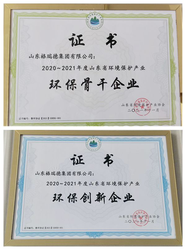 本次会议为山东省环境技术进步奖、山东省示范工程、环保骨干企业、环保创新企业、优秀会员单位、优秀环保企业家共计六个奖项颁发证书,格瑞德集团荣获“环保创新企业”、“环保骨干企业”两项荣誉。