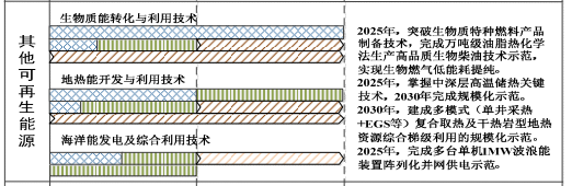“十四五”时期将集中攻关,突破高温钻井装备仪器瓶颈,支撑水/干热型地热能资源开发;攻关中低温地热发电关键技术;开展高温含水层储能和中深层岩土储能关键技术研究,实现余热废热的地下储能。