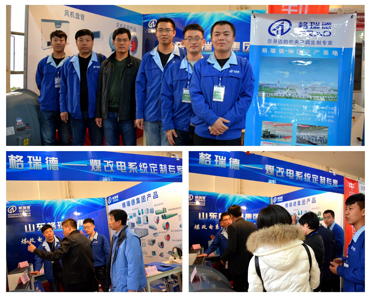 10月26-28日,山西城乡采暖煤改电技术及设备展览会在山西省展览馆召开,三十余家煤改电厂家齐聚一堂,共同助力山西煤改电项目。格瑞德集团太原办事处全体员工在华北区域总经理管志平同志的组织带领下,携煤改电产品参展,以良好的中央空调系统配套能力而备受关注。