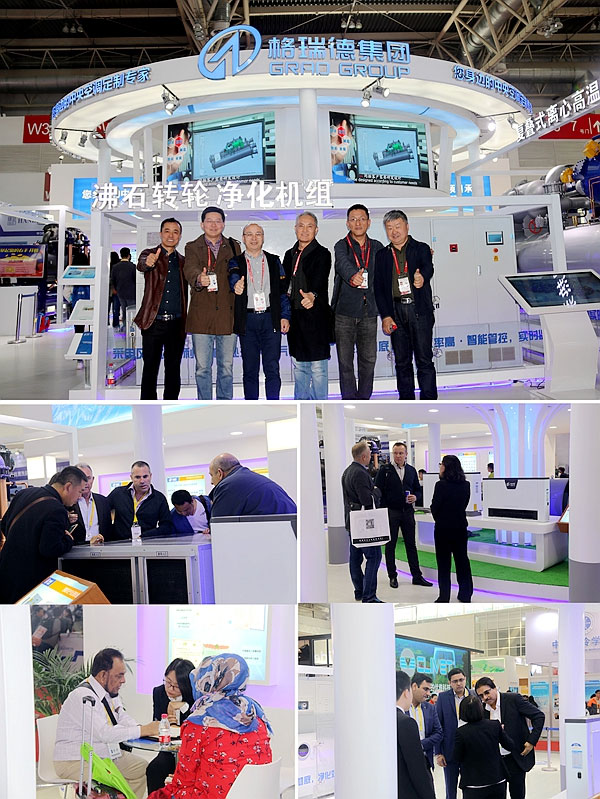 在三天的展览过程中,格瑞德展位吸引了近万名的客户参观了解。同时,众多的行业专家也对格瑞德集团做出了较高的评价。格瑞德现场展示的“复叠式离心热泵机组”、“沸石转轮净化机组”、“四联供空气净化机组”等新研发的产品更是受到了行业采购商和中外客户的广泛关注与欢迎,询问产品特点、与产品合影的客户络绎不绝。