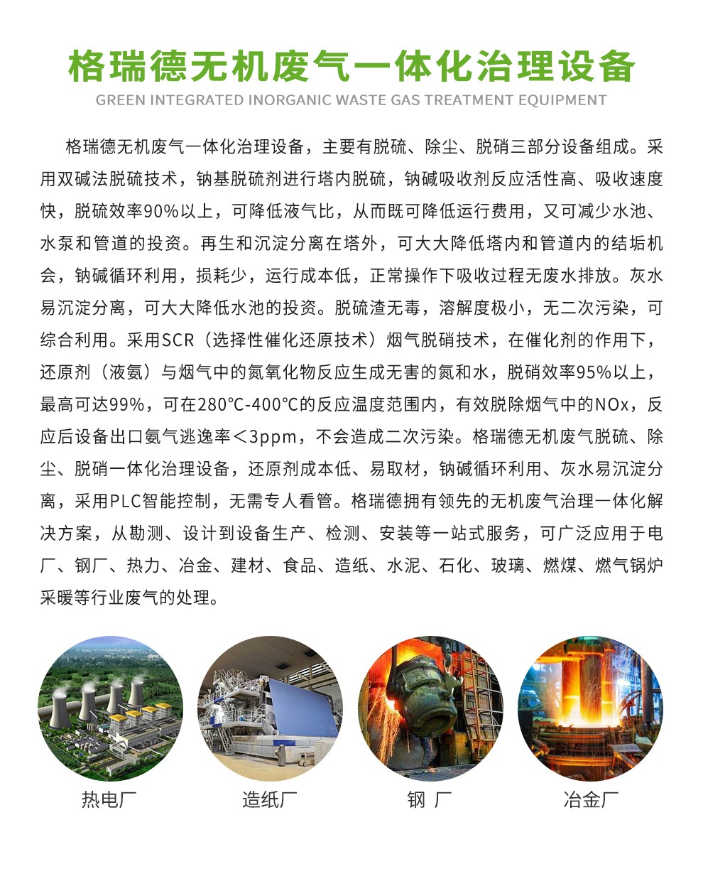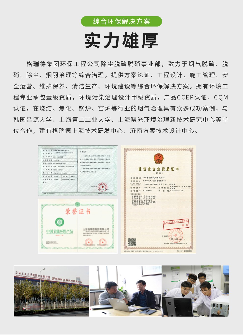 格瑞德集团致力于挥发性有机废气治理、固体废弃物安全处理处置、高浓度废水等净化处理工程,提供方案论证、工程设计、施工管理、安全运营、维护保养、清洁生产、环境建设等综合环保解决方案。